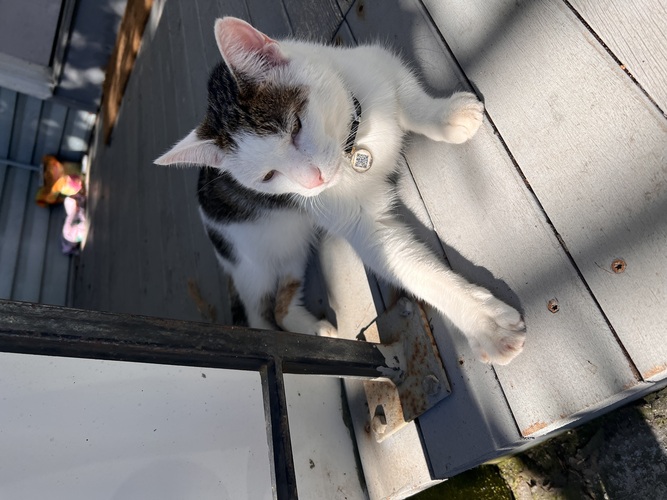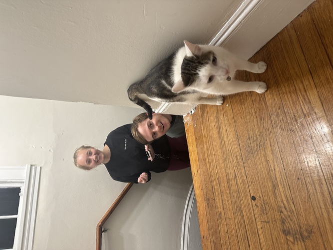Oliver let himself into our front door and wanted to come into our apartment. We gave him a treat and he was on his merry way!